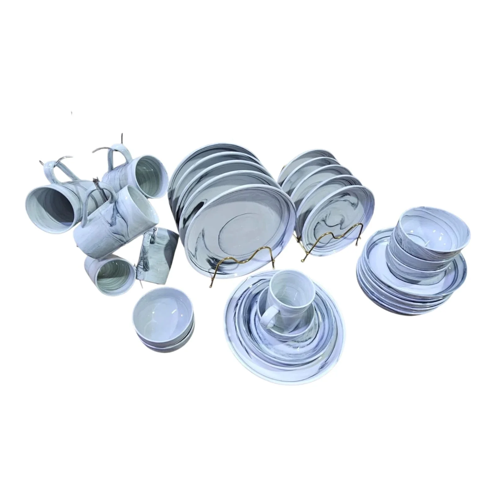 Black Marble Dinner Set 24 Piece For 6 Dining Collection