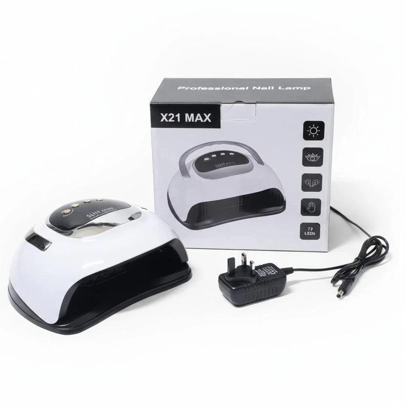 The SUN X21 MAX minimizes curing time while delivering a consistent, even finish. With 72 LEDs ensuring uniform light across every nail, you get a smoother gel setting and a longer‑lasting result. The lamp’s professional-grade build is designed to withstand daily use in busy environments, making it a dependable choice for stylists and enthusiasts alike. Easy operation adds convenience: simply plug in the 240V UK adapter, place your hand or foot inside the chamber, select the curing cycle you need, and allow the gel to cure completely before removal. This combination of speed, reliability, and ease of use makes it suitable for high‑volume studios and personal nail care routines alike.